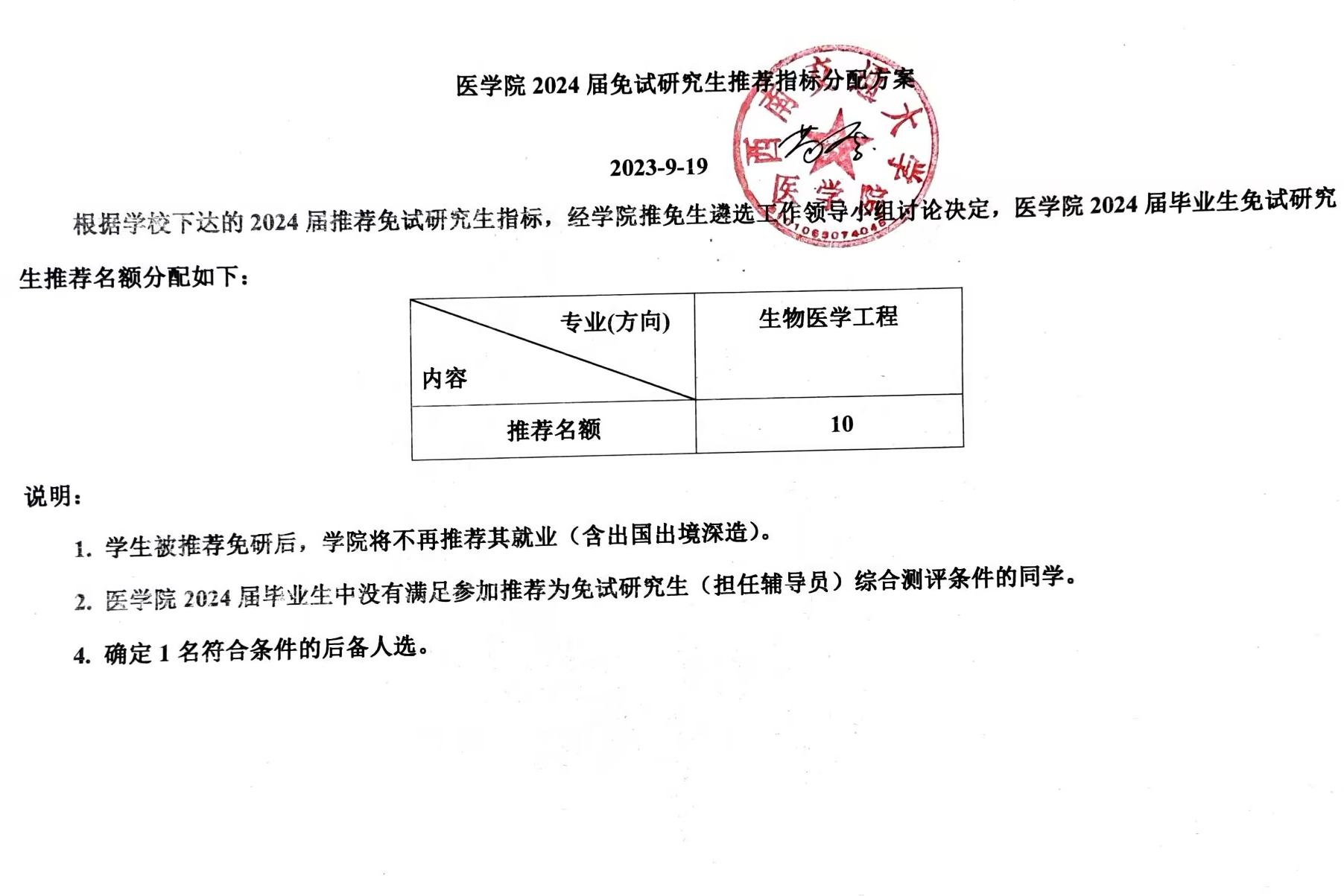 根据永利集团3044官网欢迎您《永利集团3044官网欢迎您推荐优秀应届本科毕业生免试攻读研究生实施办法》《关于公布2024年学院推免名额的通知》,经学院推免生工作小组研究决定,现将永利集团3044官网欢迎您2024届免试研究生推荐指标分配方案公布如下: