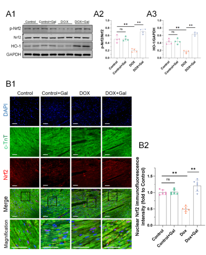 综上,该研究发现了Gal通过激活Nrf2/HO-1通路来发挥抗氧化应激和抗炎的作用,从而改善阿霉素诱导的心肌损伤和心功能不全,为治疗化疗药物诱发的心脏毒性提供了新策略,且Gal安全性高,其临床转化大有可为。
